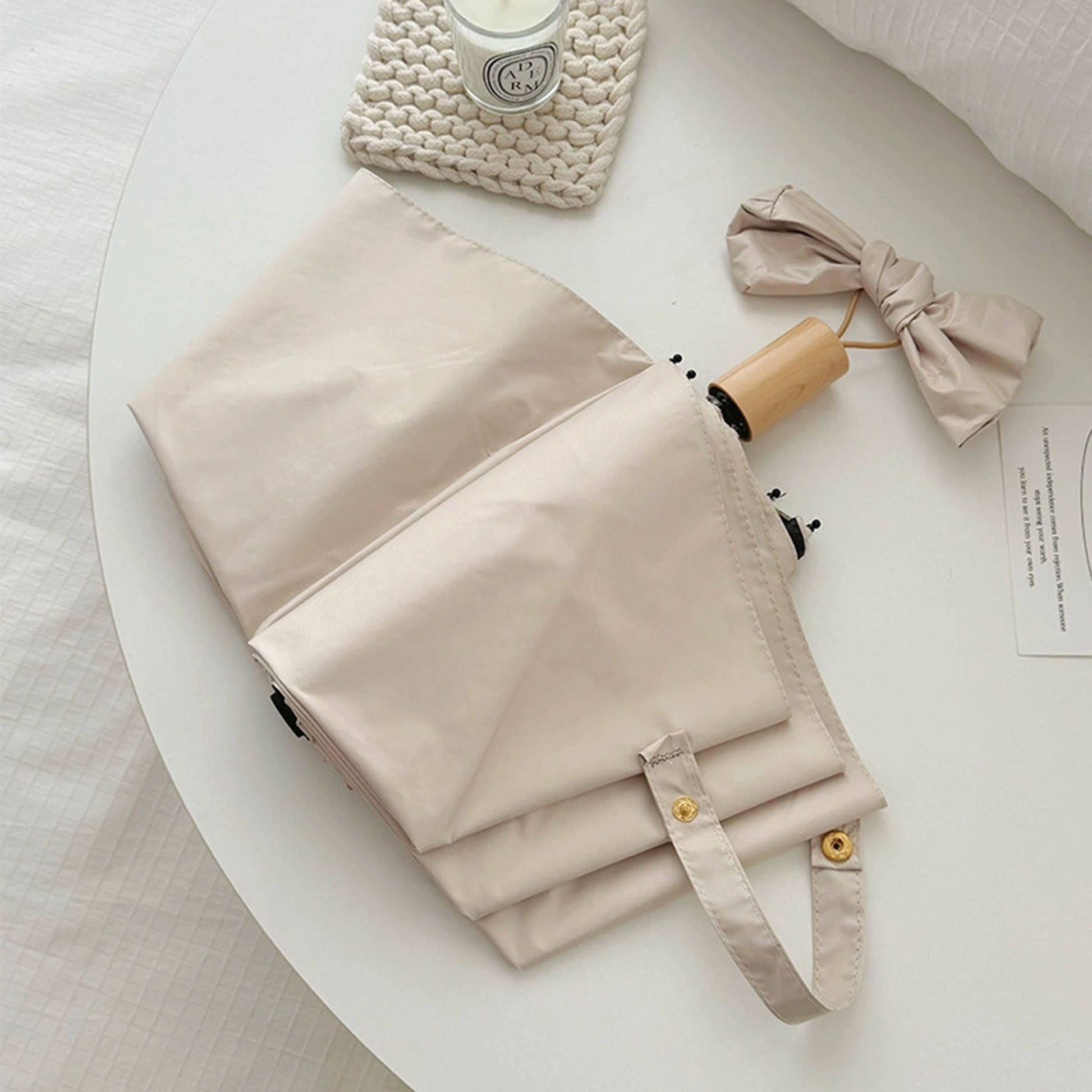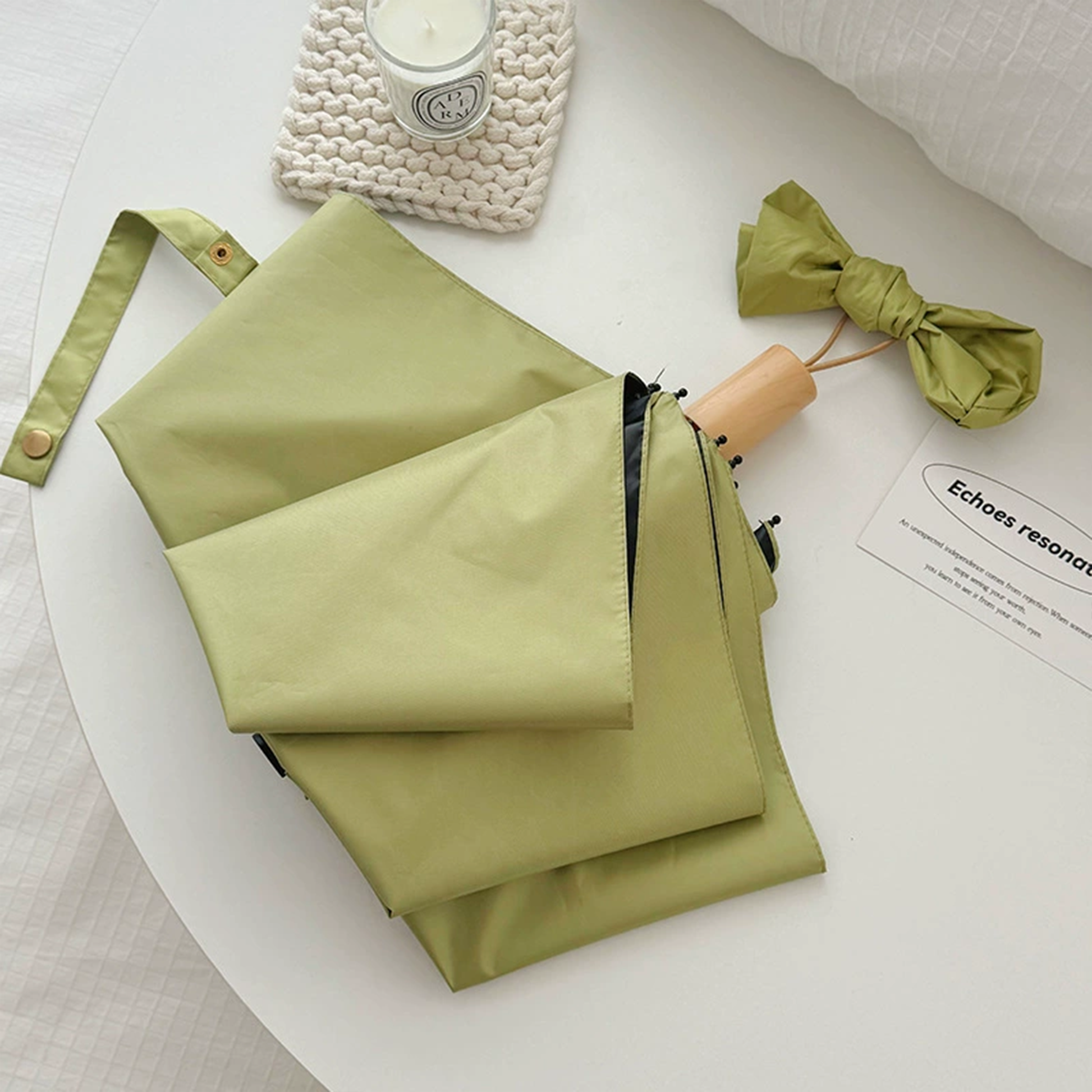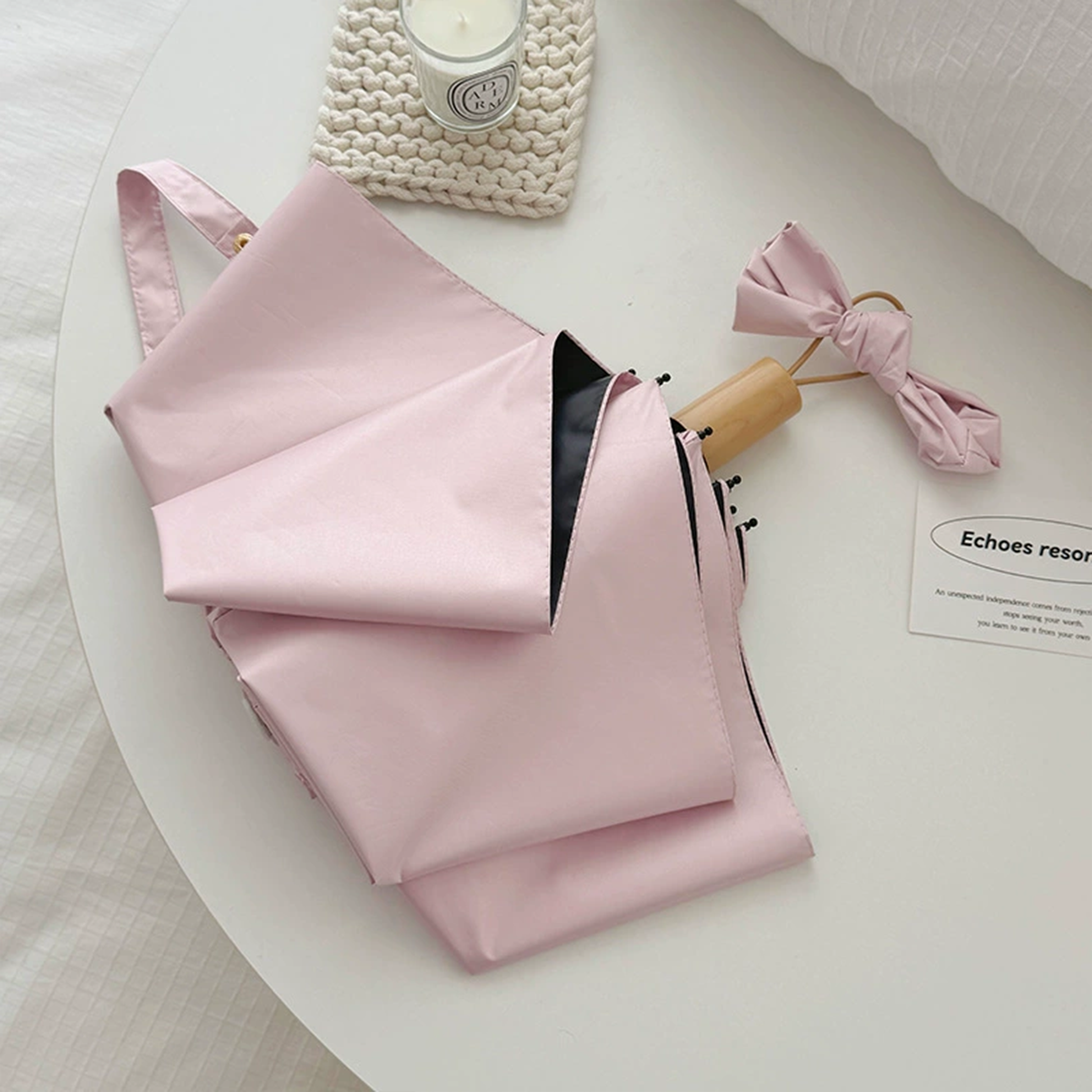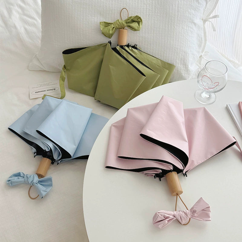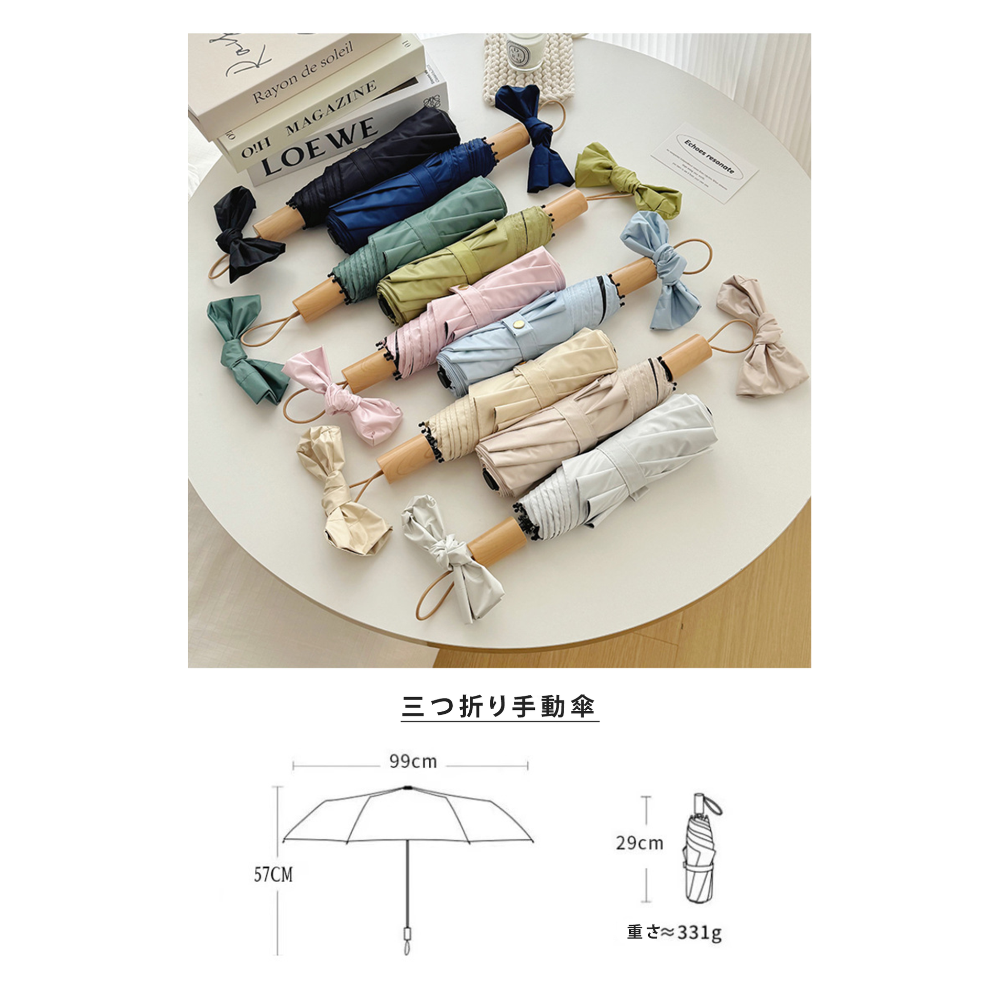 かわいい魅力的なマカロン色のガーリーな3つ折り手動傘晴れの日にも雨の日にも。模造木製ハンドルと日焼け防止