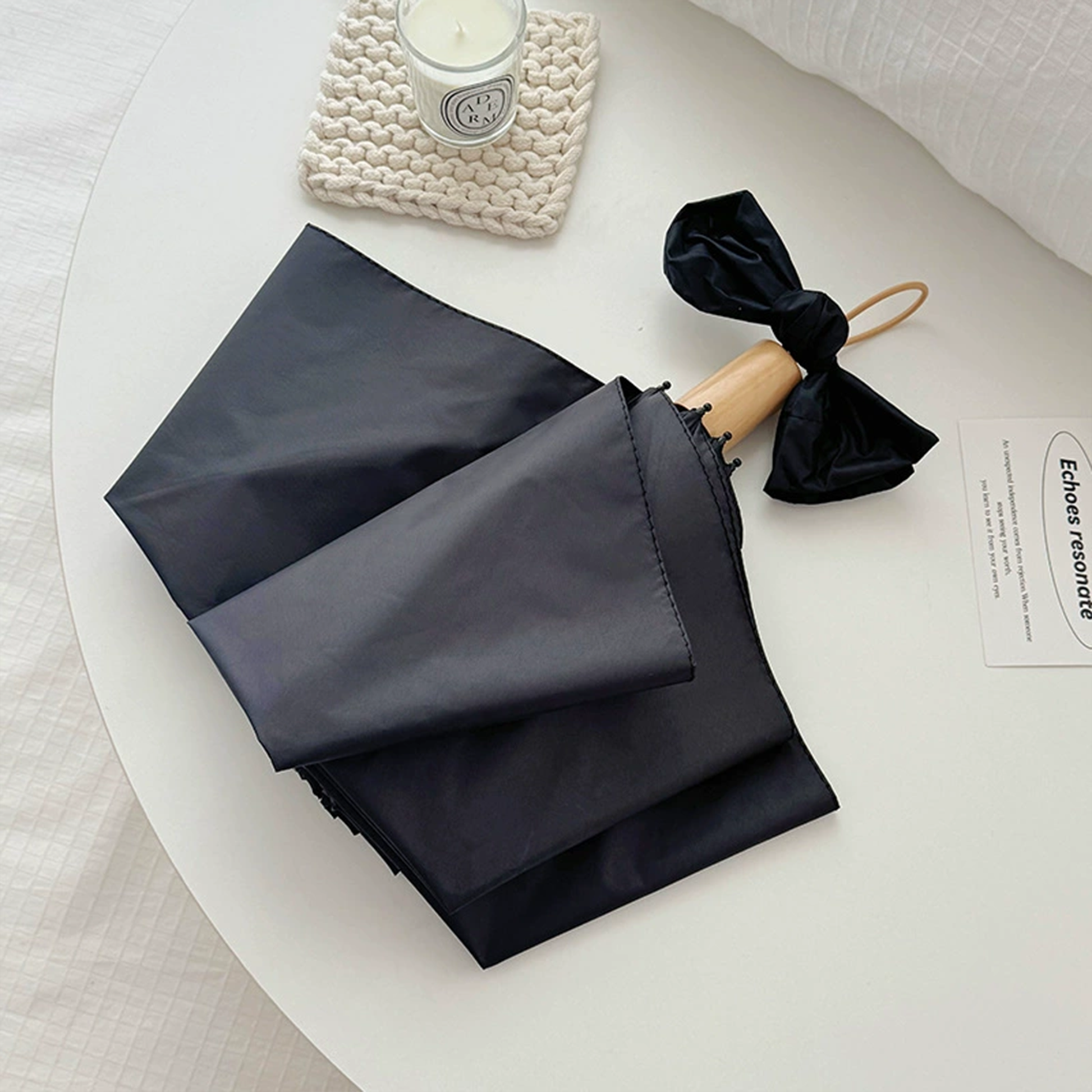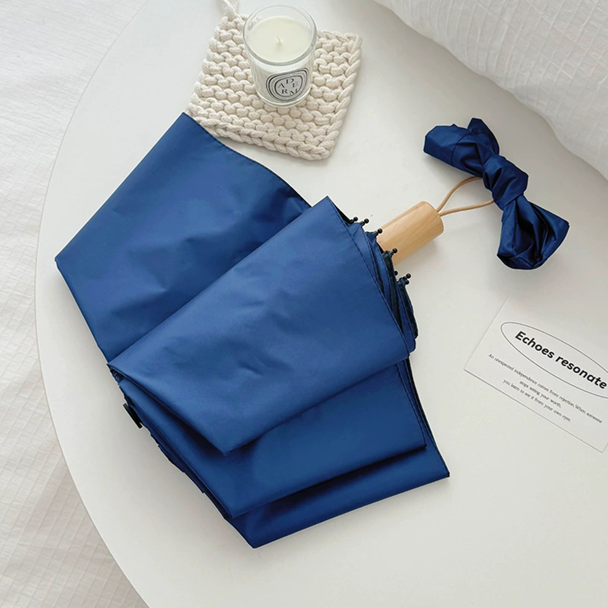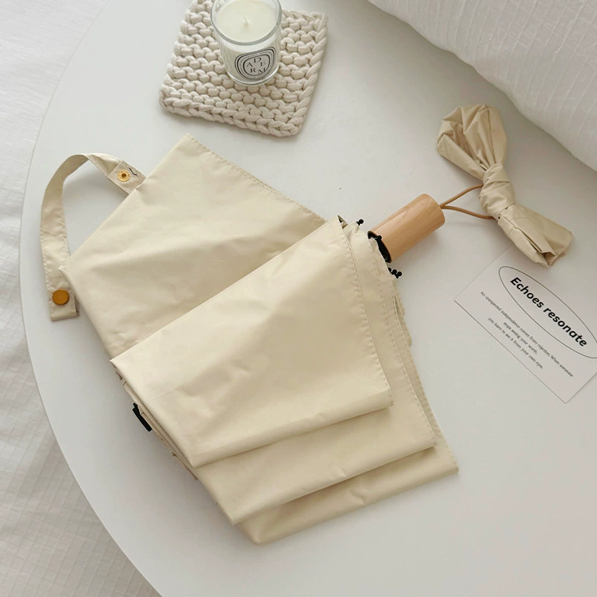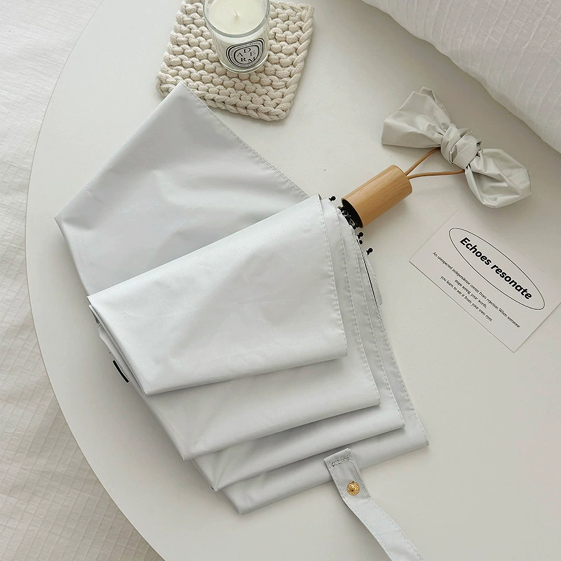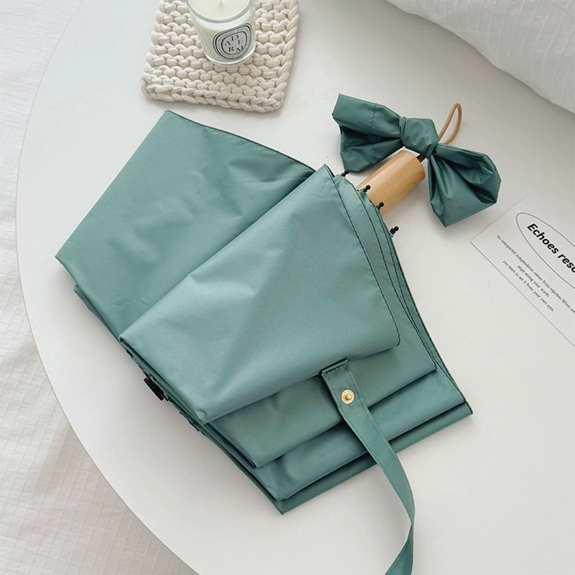かわいい魅力的なマカロン色のガーリーな3つ折り手動傘晴れの日にも雨の日にも。模造木製ハンドルと日焼け防止