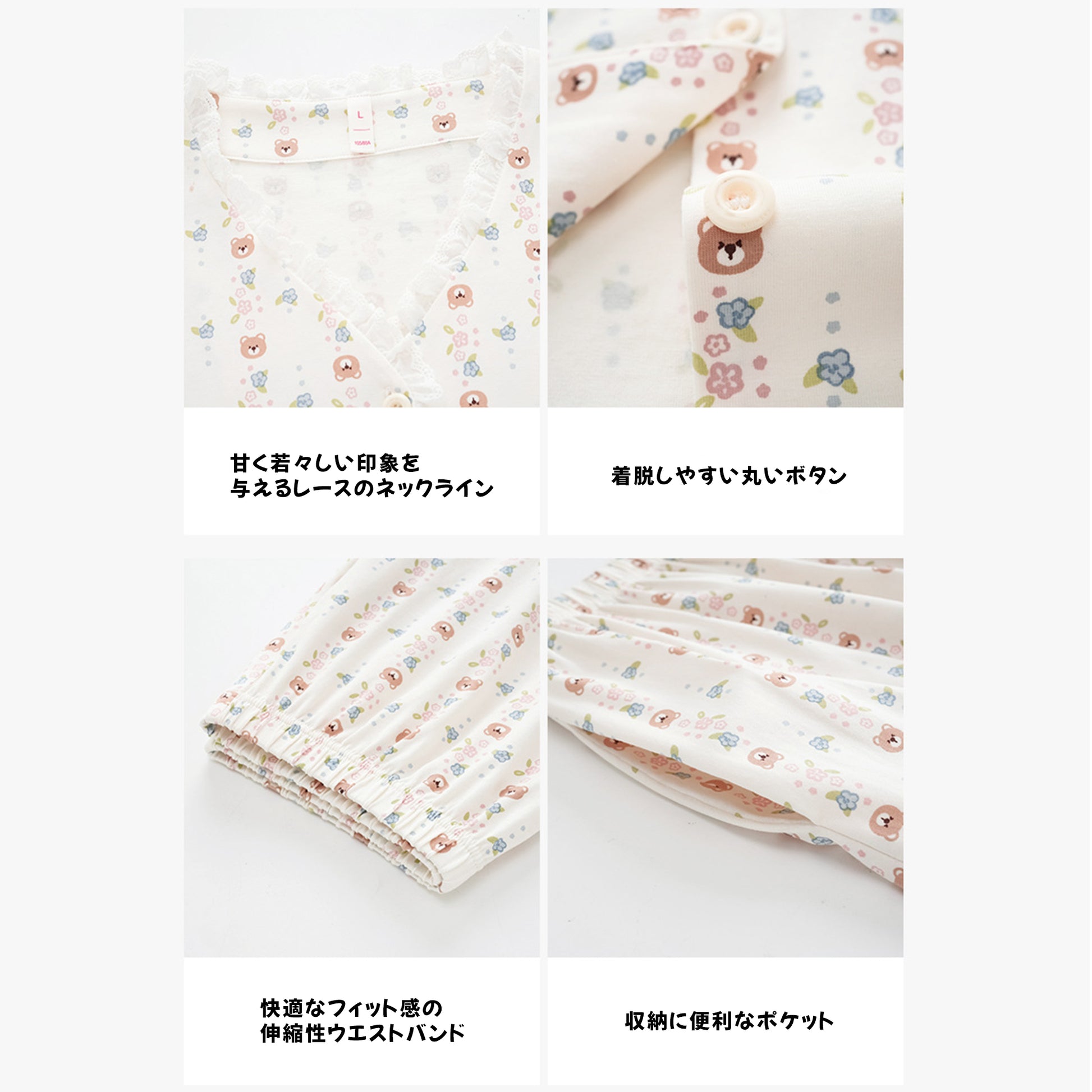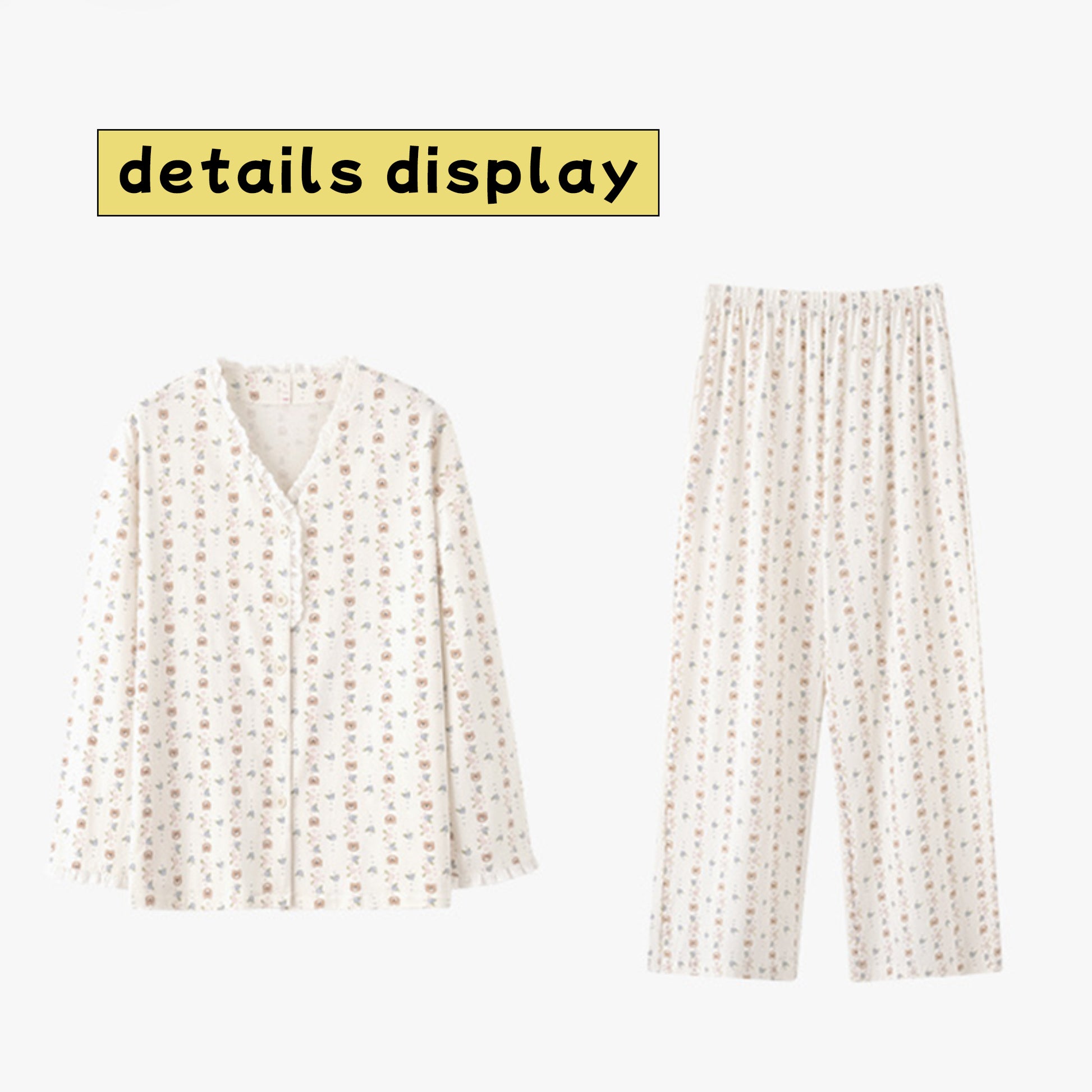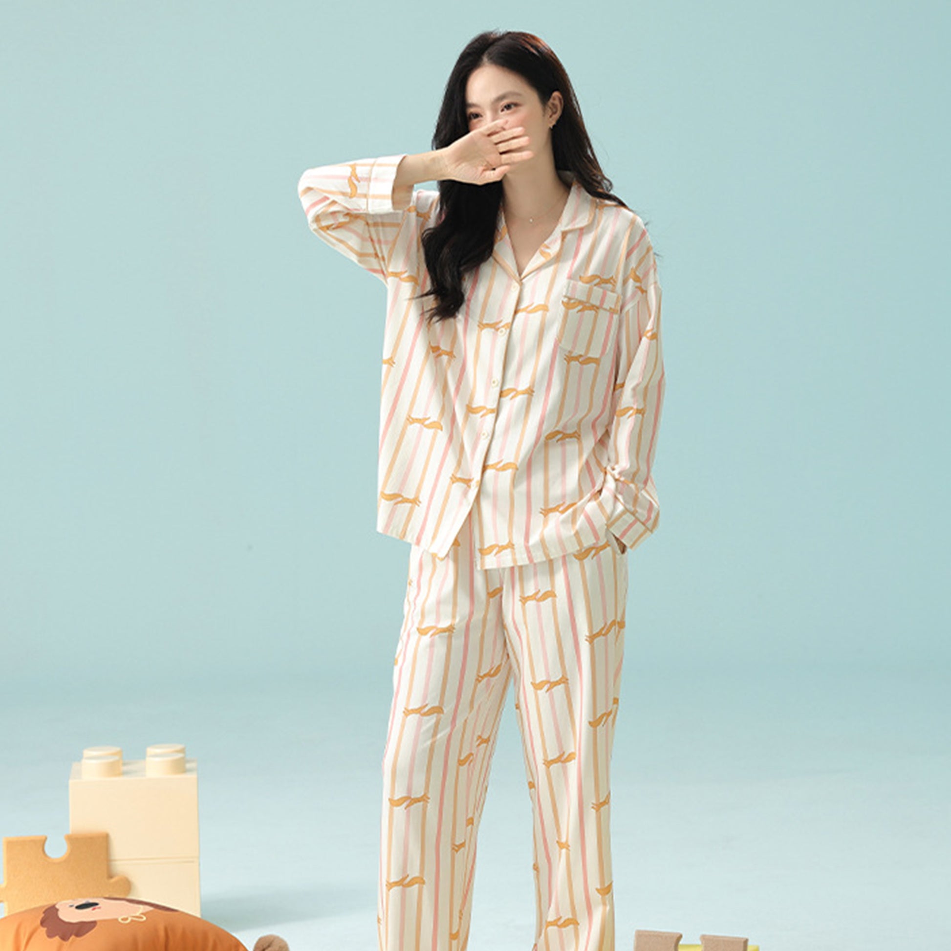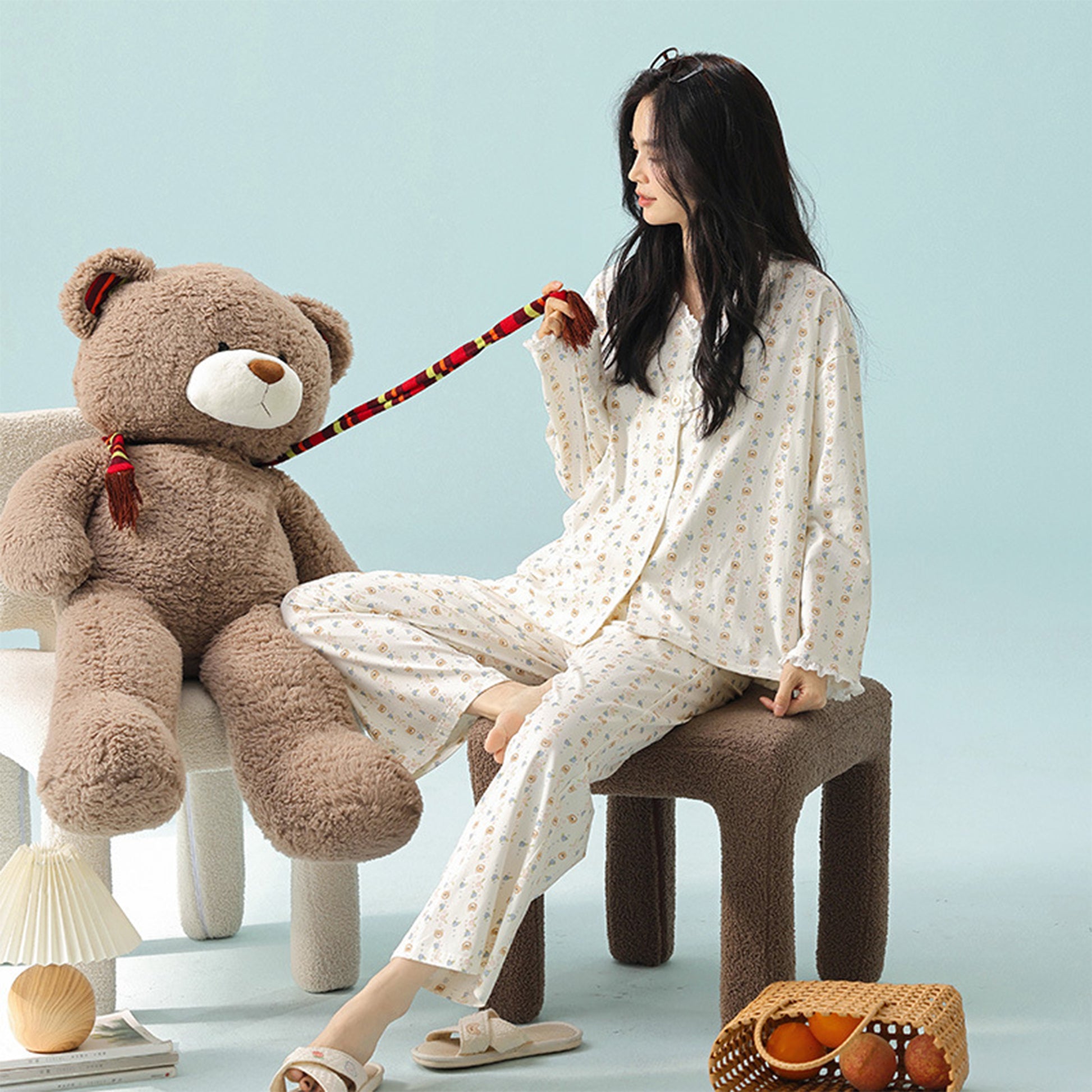 抗菌新疆綿]春の新作パジャマ女性用、純綿長袖、韓国風 ホームウェアスーツ