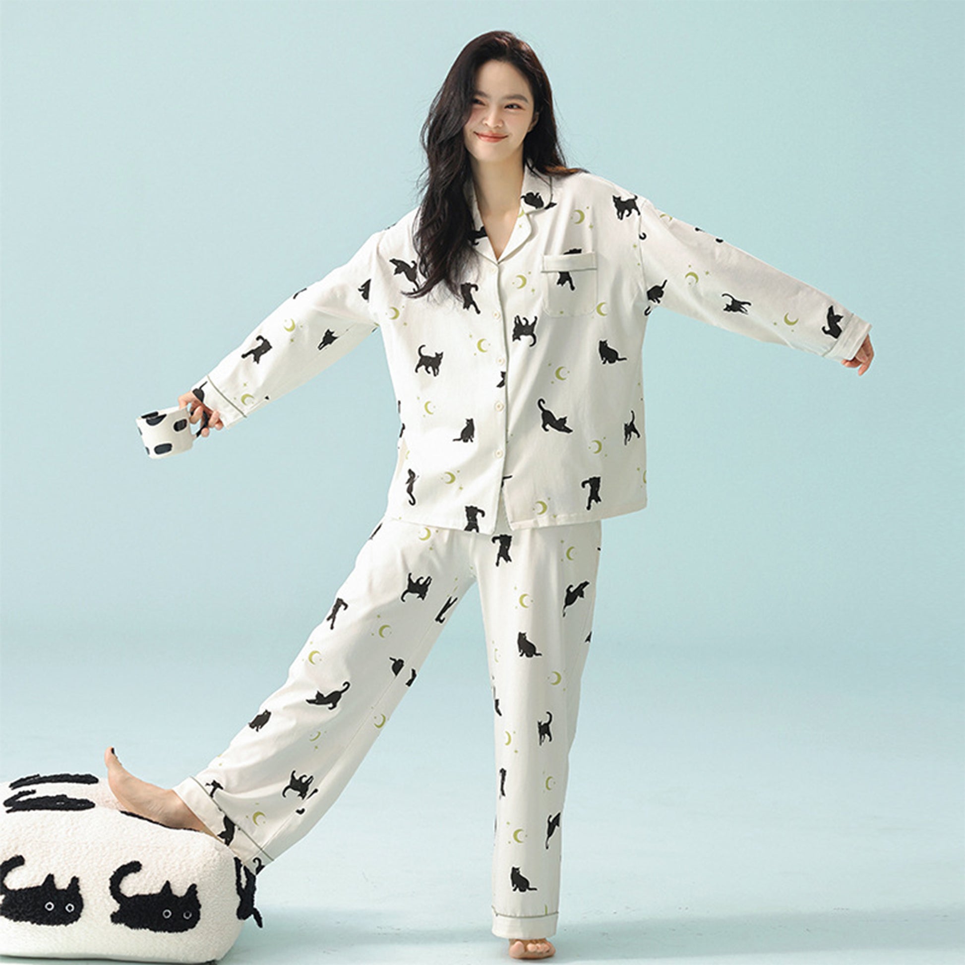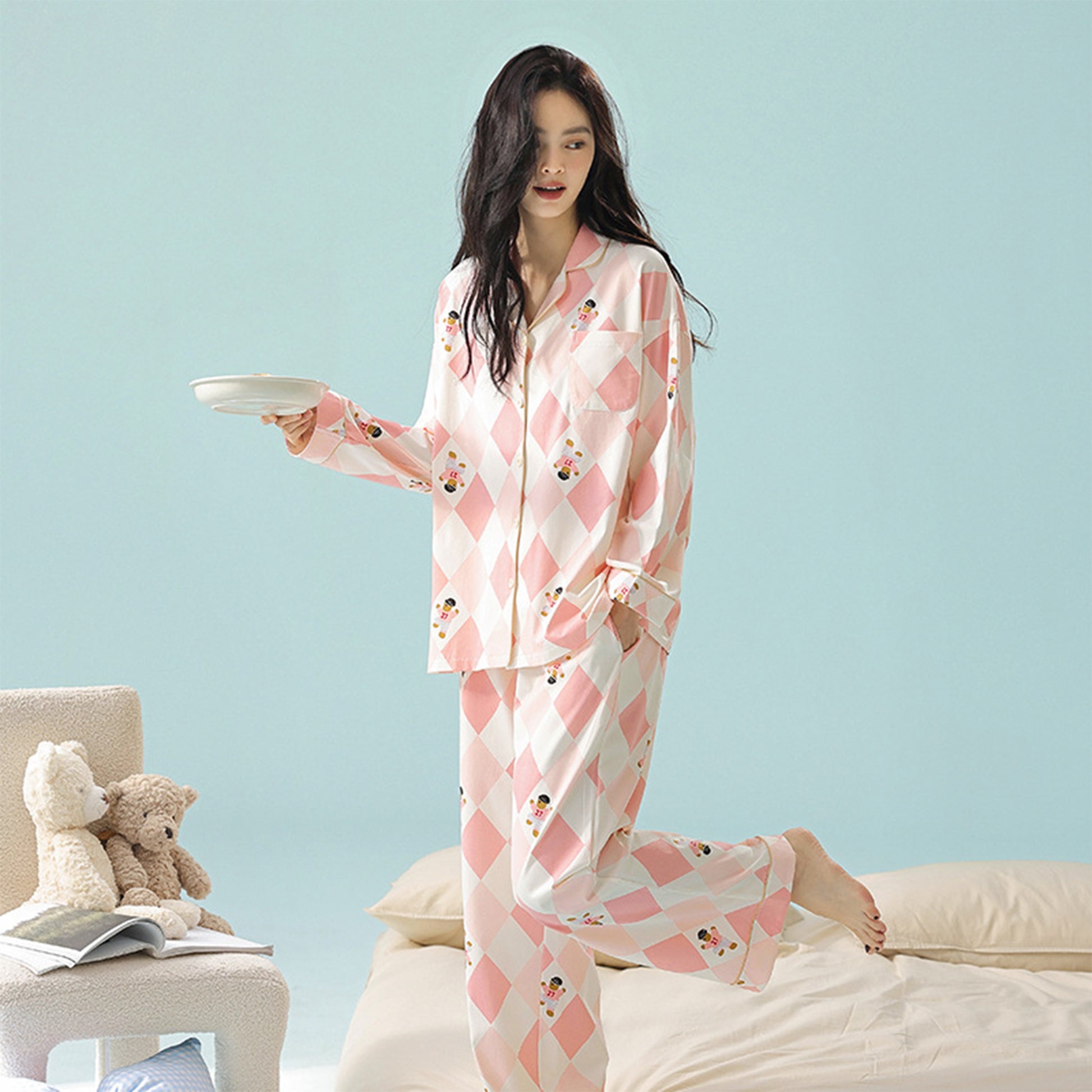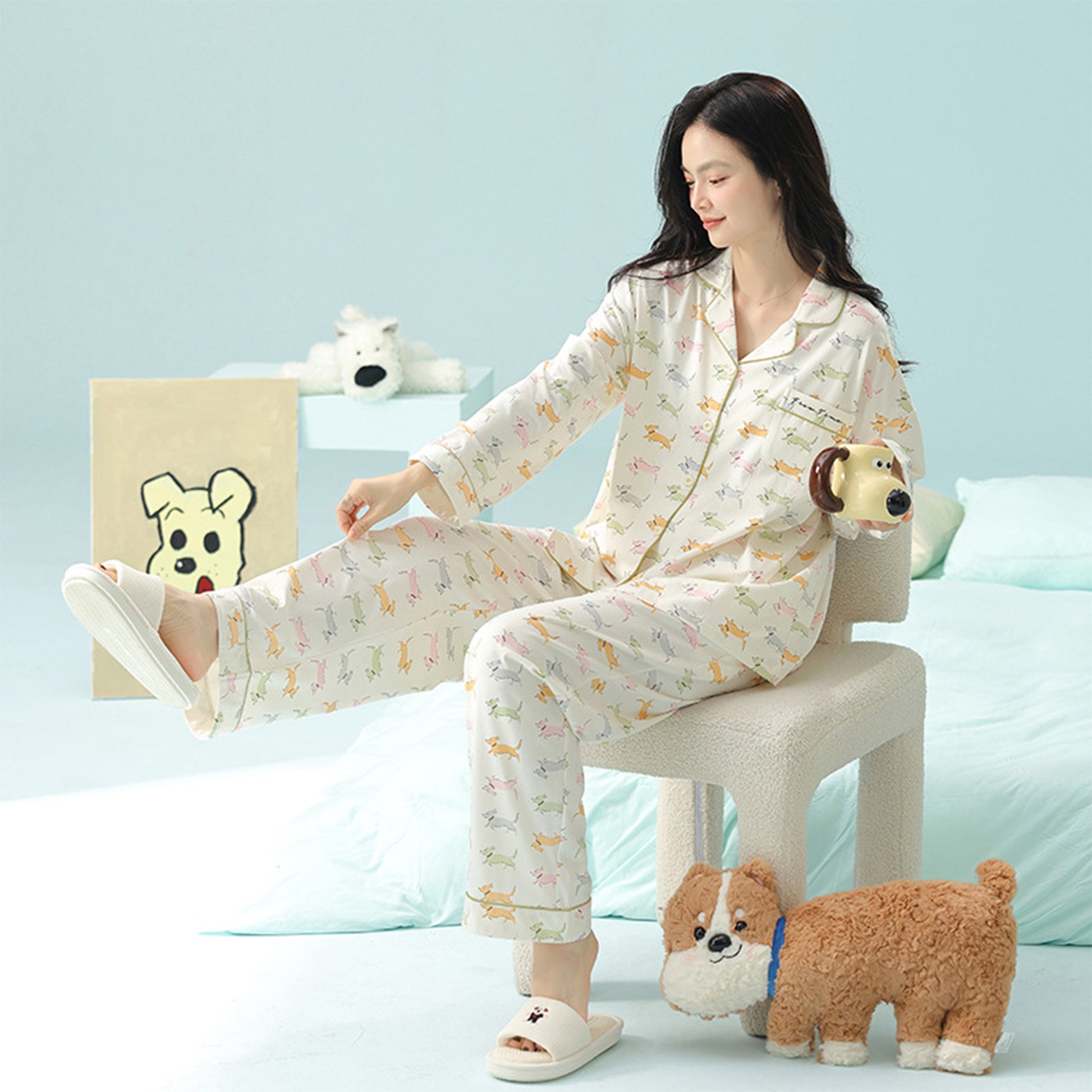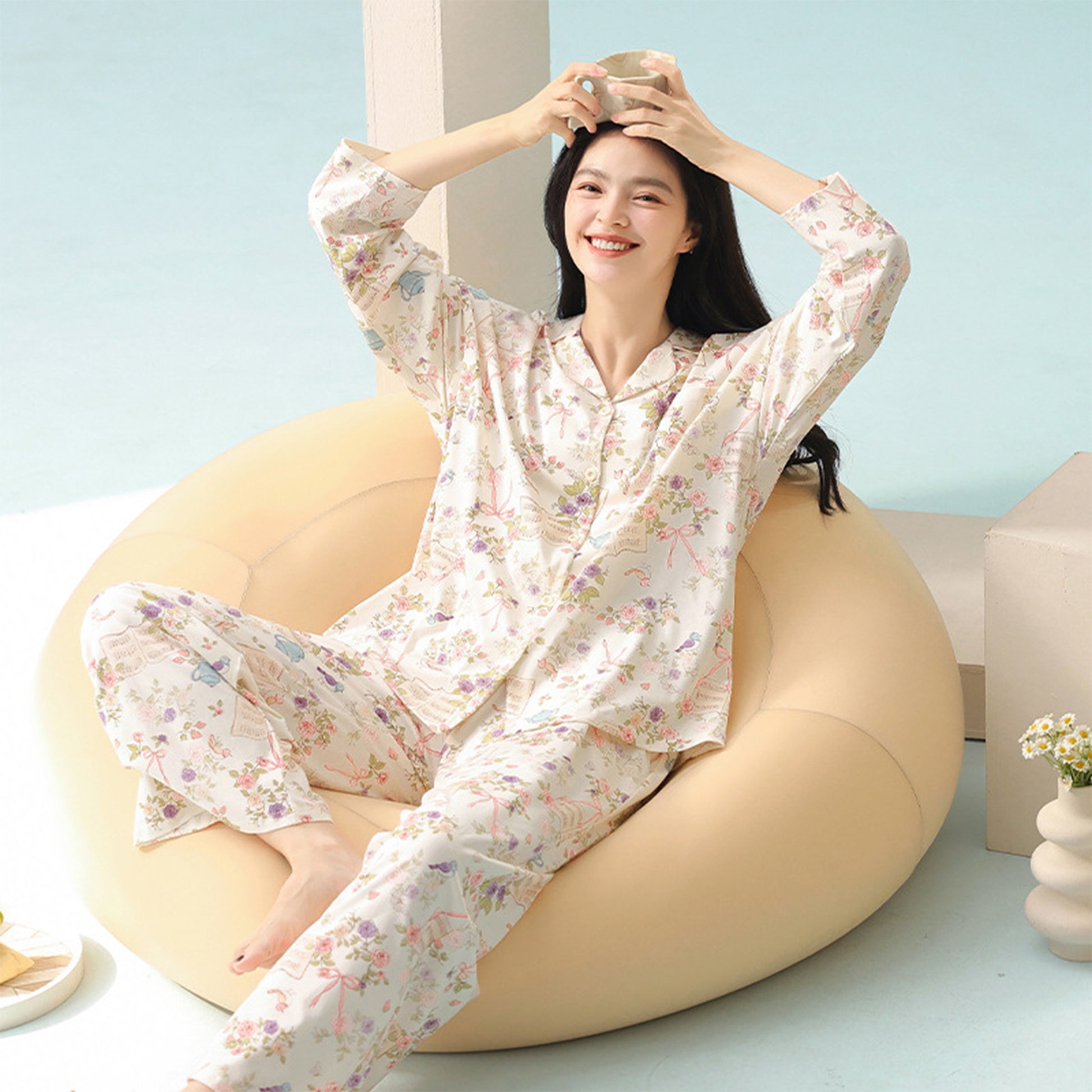 抗菌新疆綿]春の新作パジャマ女性用、純綿長袖、韓国風 ホームウェアスーツ
