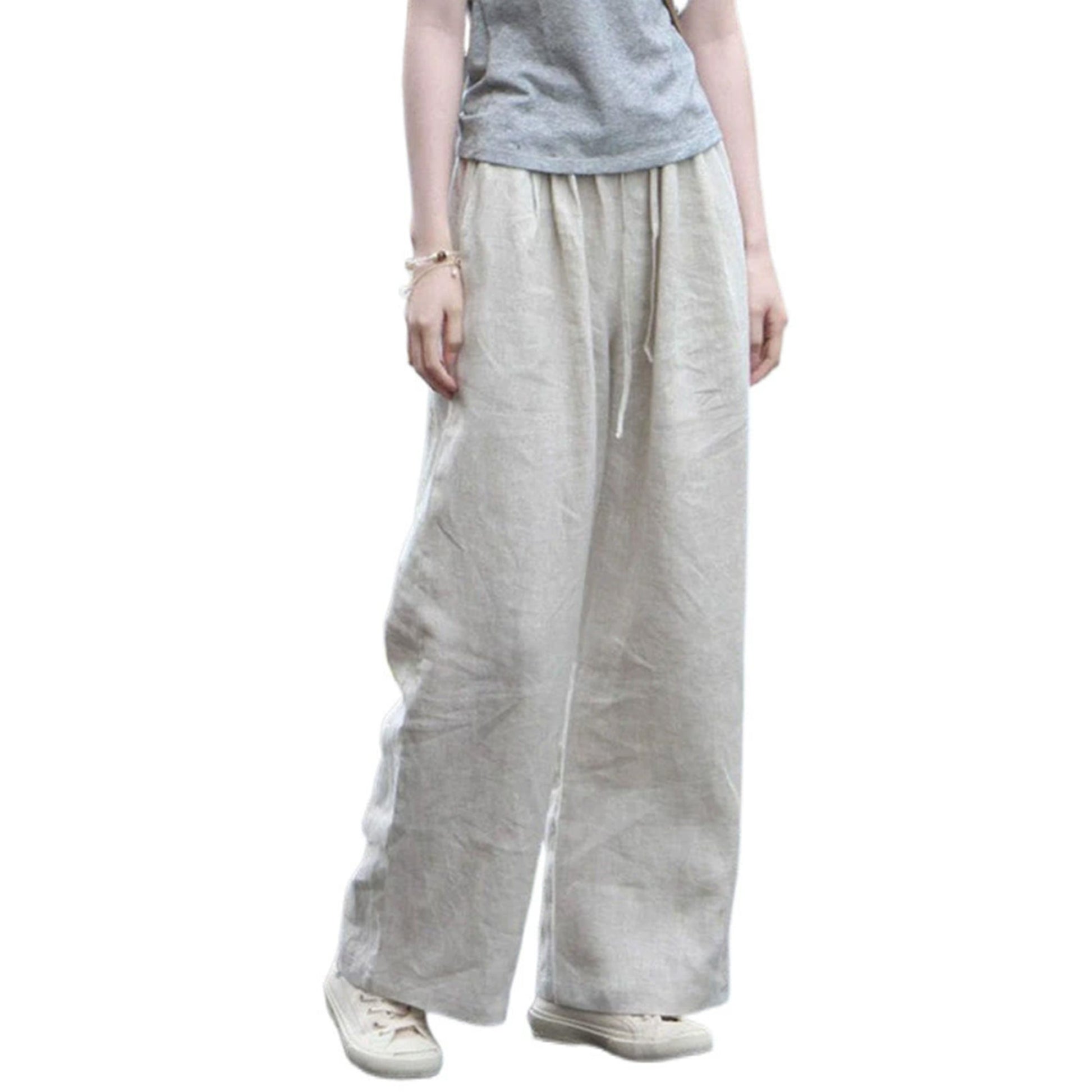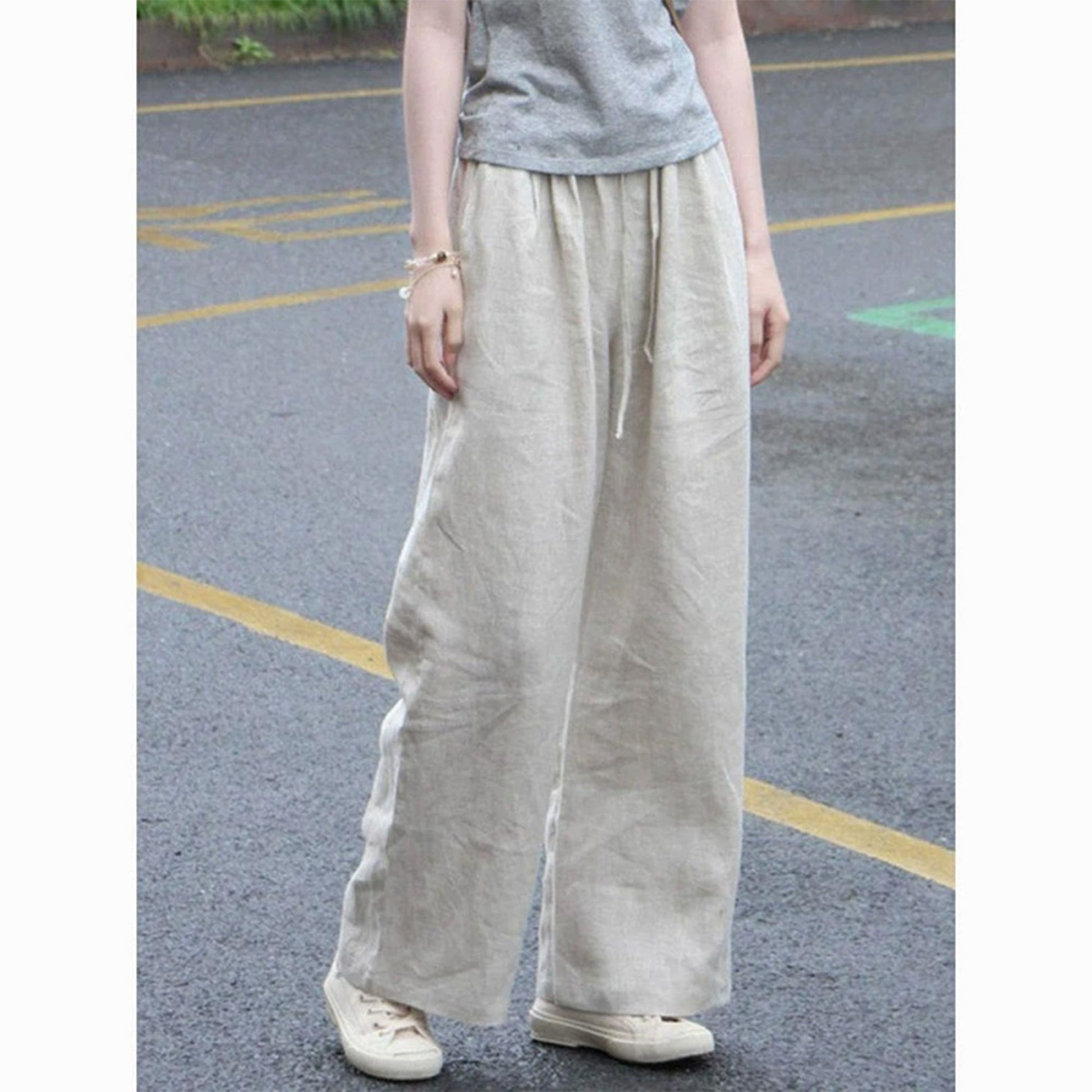 日系綿麻パンツカジュアルパンツ春の薄手小柄亜麻パンツゆったりワイドパンツだるい散歩パンツ